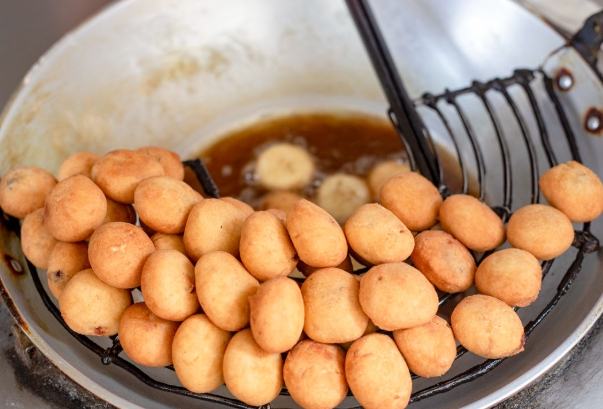 - 特色與亮點: 超迷你紅豆炸饅頭!小小的麵糰包著一點紅豆餡,丟入油鍋炸到金黃膨脹,外皮微酥,裡面是帶有空氣感的柔軟麵皮,加上甜甜的紅豆泥,簡單懷舊的好味道。一顆顆停不下來。