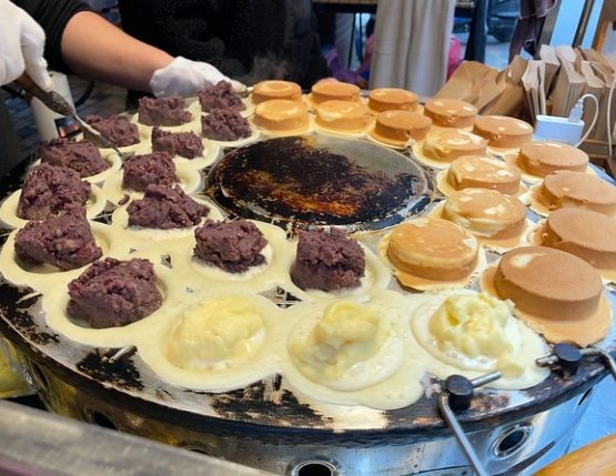- 特色與亮點: 這攤小小的,不起眼,但一靠近就聞到濃濃蛋奶香!外皮烤得微焦,帶點脆度,重點是內餡爆炸多!經典的奶油口味,一咬開,香甜滑順的卡士達醬立刻湧出,燙口也甘願。紅豆餡則是綿密帶顆粒,甜度剛好。還有芋頭、巧克力、蘿蔔絲等選擇。